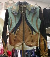 or an incredible colorful funky leather and suede jacket that has duck heads on the collar.
